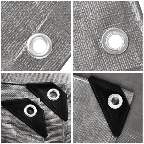- Усиленные кольца: Помимо толстого материала, защитный чехол усилен швами с втянутыми полипропиленовыми шнурами. Через каждые 100 см имеется нержавеющая проушина, при этом проушины в каждом углу усилены треугольными пластинами, что не только продлевает срок службы, но и облегчает крепление.